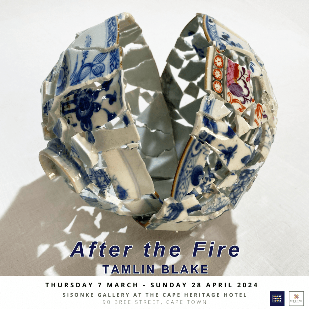 An object made with skill, craftsmanship, and deep intent forever reflects a moment in history. This is what mixed media artist Tamlin Blake showcases in her latest exhibition, After the Fire, at the Sisonke Gallery at The Cape Heritage Hotel, from 7 March 2024 to 28 April 2024. A devastating fire decimated a large portion of a private home in the winelands in 2020 and extensively damaged a well-loved art collection housed there. This affected Blake deeply because many of the artworks were by artist friends or artists she deeply admired. In some cases, all that was left of paintings on the walls were the metal hanging fixtures and stains where the oil paint had melted to the floor.
