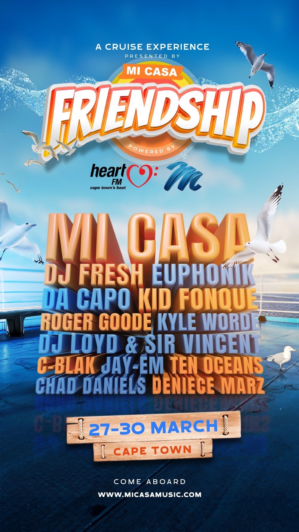The Mi Casa Friendship Cruise Experience is powered by Heart FM and Mnet. Set sail with Mi Casa in March 2025 and create memories that will last a lifetime. Book your spot now and get ready for an adventure like no other!