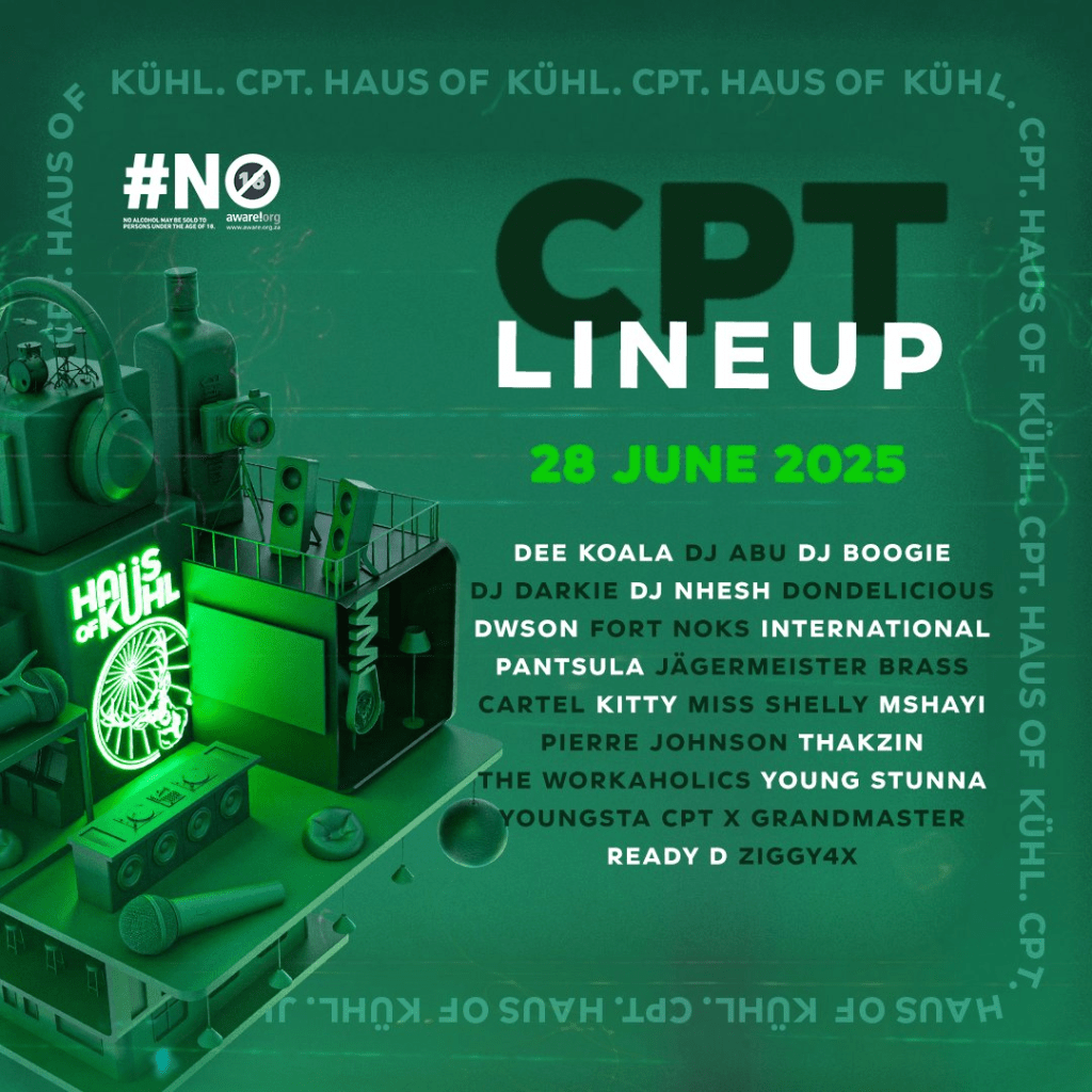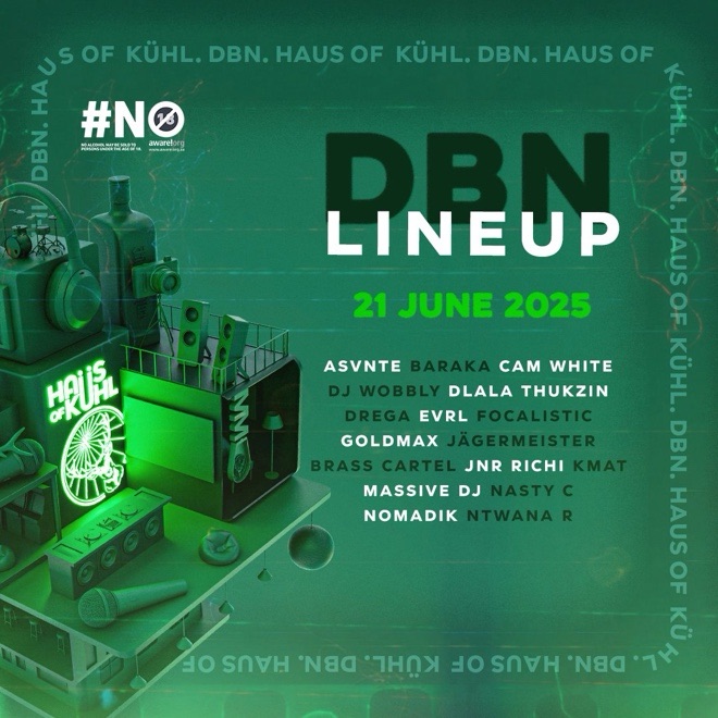 18 June 2025: Jägermeister has announced the Haus of Kühl line up for the Durban edition of the event. “The lineup features Dlala Thukzin, KMAT, Wobbly, Foca, Nasty C, Brass Cartel, and more. Join us for what promises to be an incredible night,” mentions @JagermeisterSouthAfrica