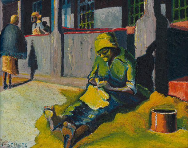 [WILHELM]: The painting is what we call an important ‘pre-exile’ work. Sekoto went into self-imposed exile in 1947, briefly to London and then onto Paris where he stayed the rest of his life, dying in 1993. He never visited South Africa again, but he did attend an arts festival in Dakar, Senegal in 1966. This experience inspired the wonderful, and regal, ethereal Senegalese women he painted at the time. The pre-exile work is highly sought after and usually fetch very high prices on auction. Also, the work is repatriated from Australia, and so we are celebrating a veritable Sekoto homecoming at the same time!