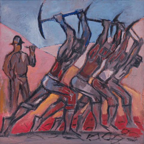 [WILHELM]: What is surprising for me is how versatile Sekoto was in the use of his subject matter. There is an infinite variety of ways in which a curator can engage with his work, constantly pulling out different themes from his work. The worker was particularly striking for me because we often forget how important the worker is in our lives. The show also happens to fall un 1 May, International Workers Day. As an art historian, I was also surprised to see the many depictions of the worker in art over the past two centuries, starting with the Realists in the mid-19th century, then, the depiction of the worker during the 1917 Russian Revolution, and later, in the 1930s the Mexican Revolution. Also, South African artists portraying the worker in their art: Dorothy Kay, David Goldblatt, Mary Sibande, and even William Kentridge in his well-known public sculpture, The Fire Walker in downtown Johannesburg.