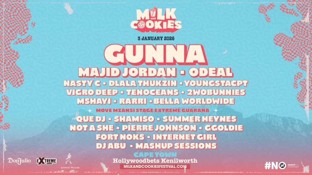 Milk + Cookies Festival has finalised its 2026 line-up with Odeal and Elmiene joining headliners Gunna and Majid Jordan across Cape Town and Johannesburg. The month-long programme blends performances, community initiatives, and creative industry events. Don Julio and Johnnie Walker return as partners, shaping elevated hospitality and immersive brand experiences.